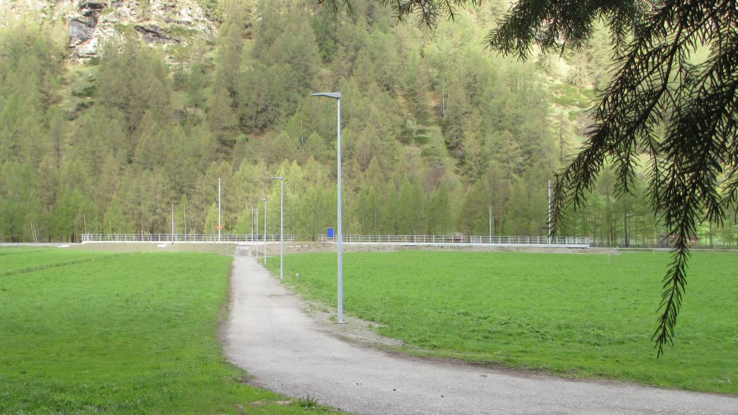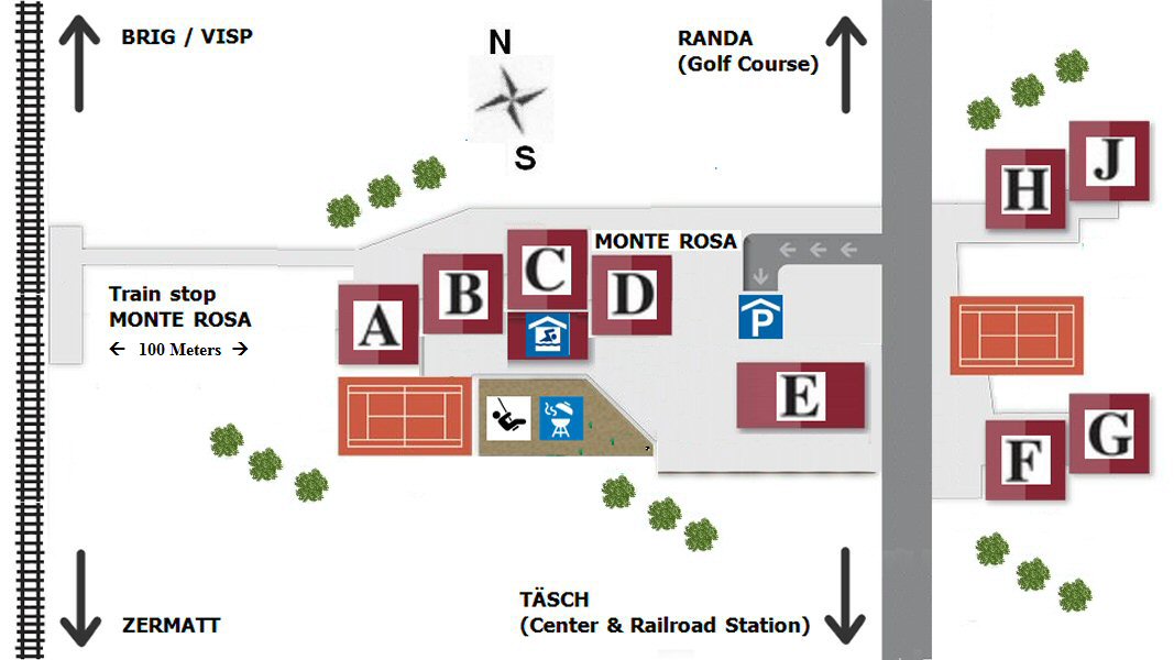 MONTE ROSA: Blick von Haus A in Richtung der Bahnhaltestelle für den Skizug nach ZERMATT.