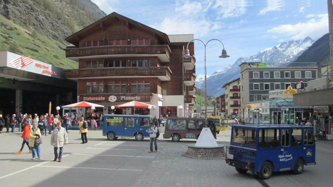 Rechtes Bild: ZERMATTER Hauptstrasse am Bahnhof.